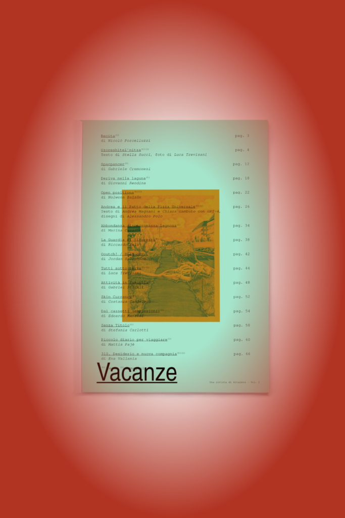 We’ll be at Potlatch on Thursday, May 15 from 6 PM to present Vacanze 1 & 2 with a performance by Eva Vallania, a reading by Nolwenn Salaün, and DJ sets by DJ Bancomat and Gran Soleil. Come join us!