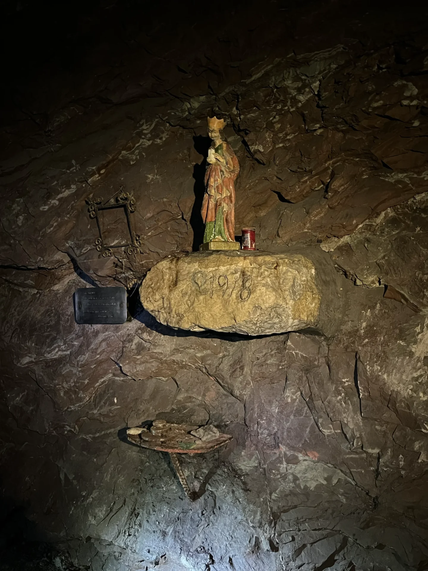 A statue of Saint Barbara inside the caves
