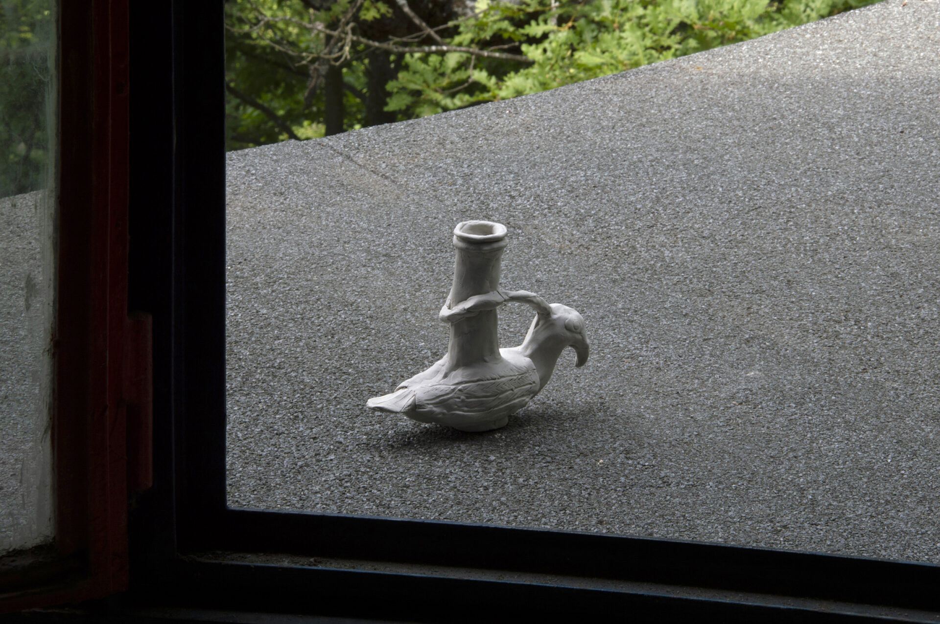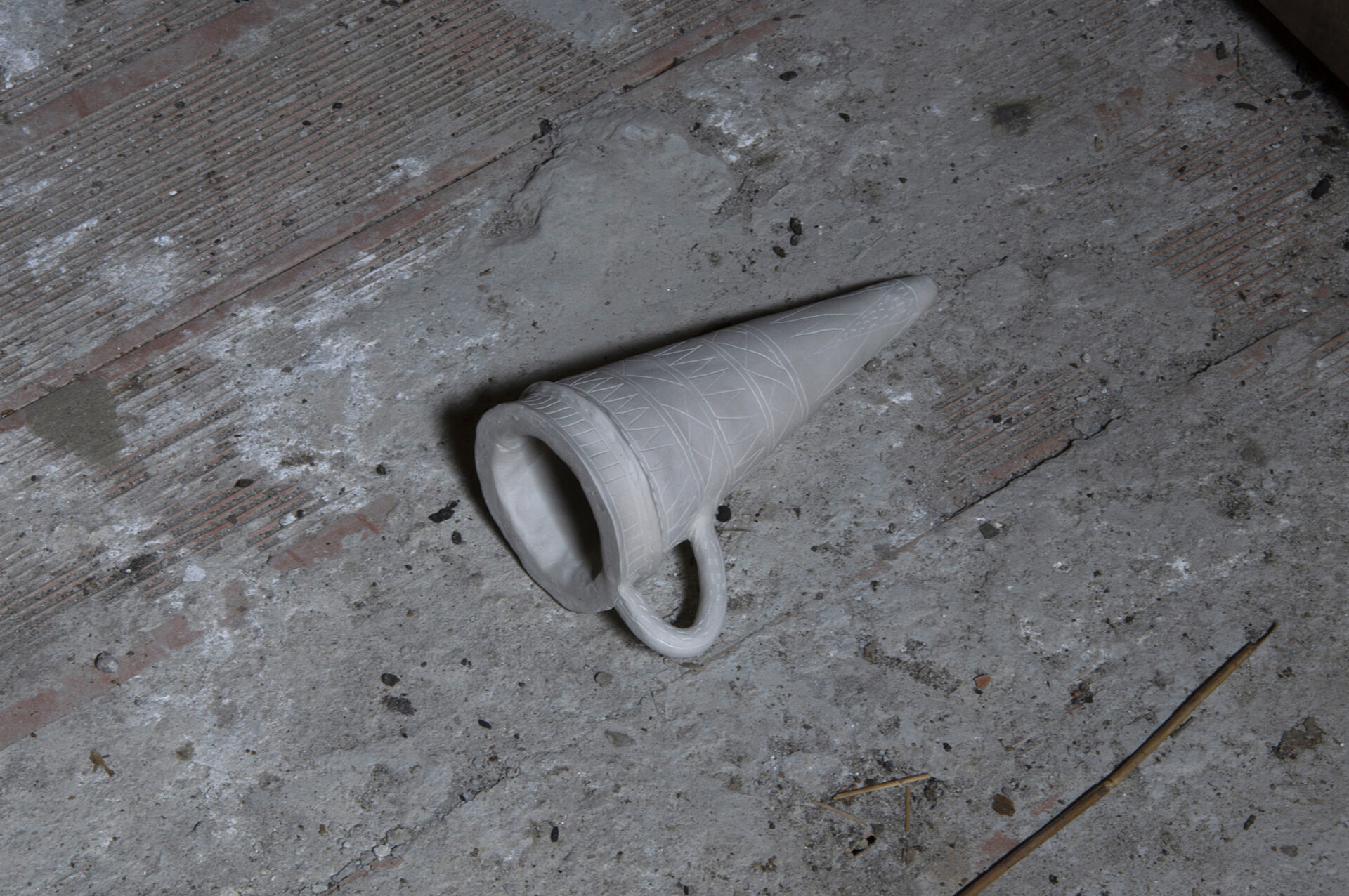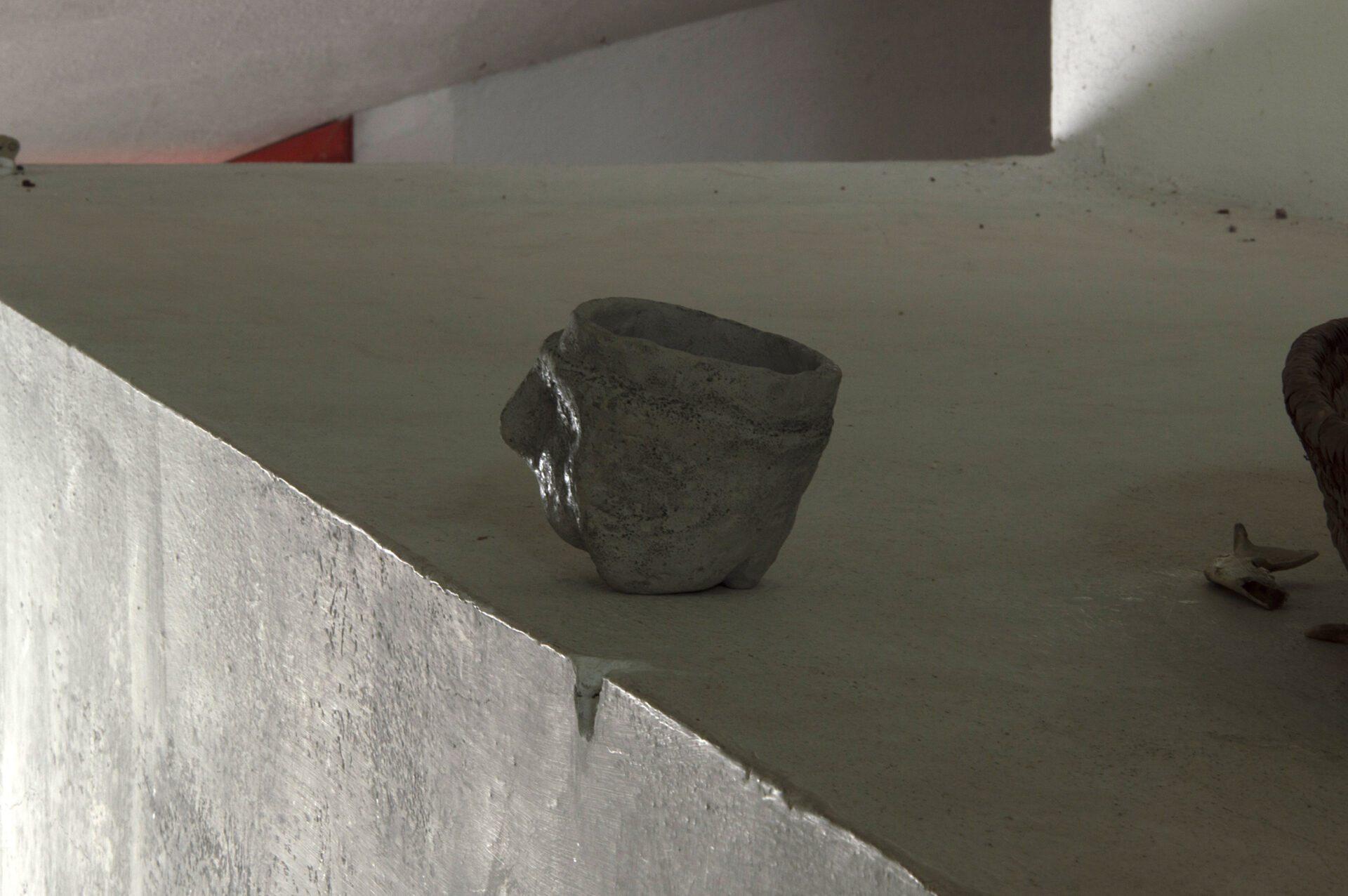 We spent a week living together at Robassa, a secluded house in the hills built in a modern style in the late sixties. It is a home that requires constant and costly maintenance: today the deterioration of the structure and its abandonment mean it is also used as a refuge by wild animals. Here, we recreated various objects from late antiquity and the late Bronze Age. The act of recreating these objects was for us a means of meditation on the past, present and future. Robassa was in turn a source of inspiration itself: the objects emerge from its spaces as though from a glitch in the space-time continuum marked by ruin.