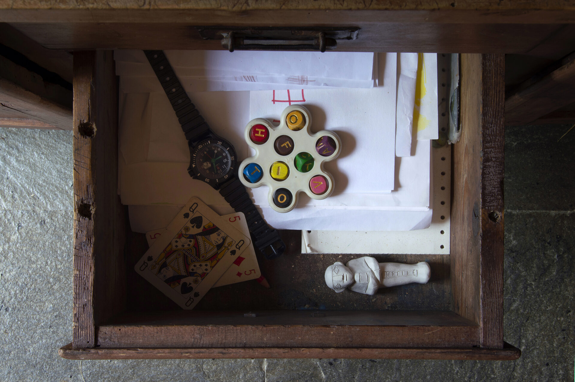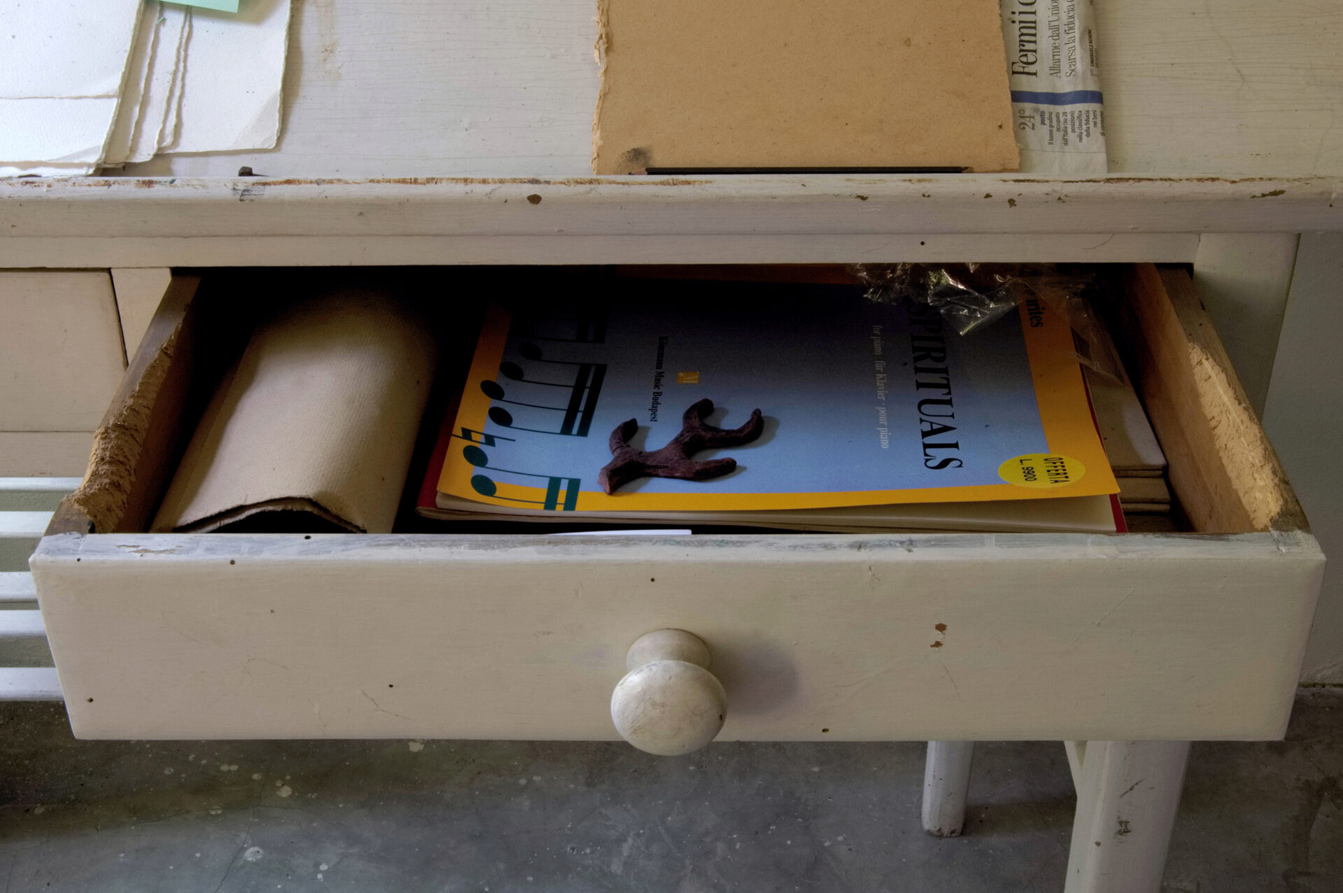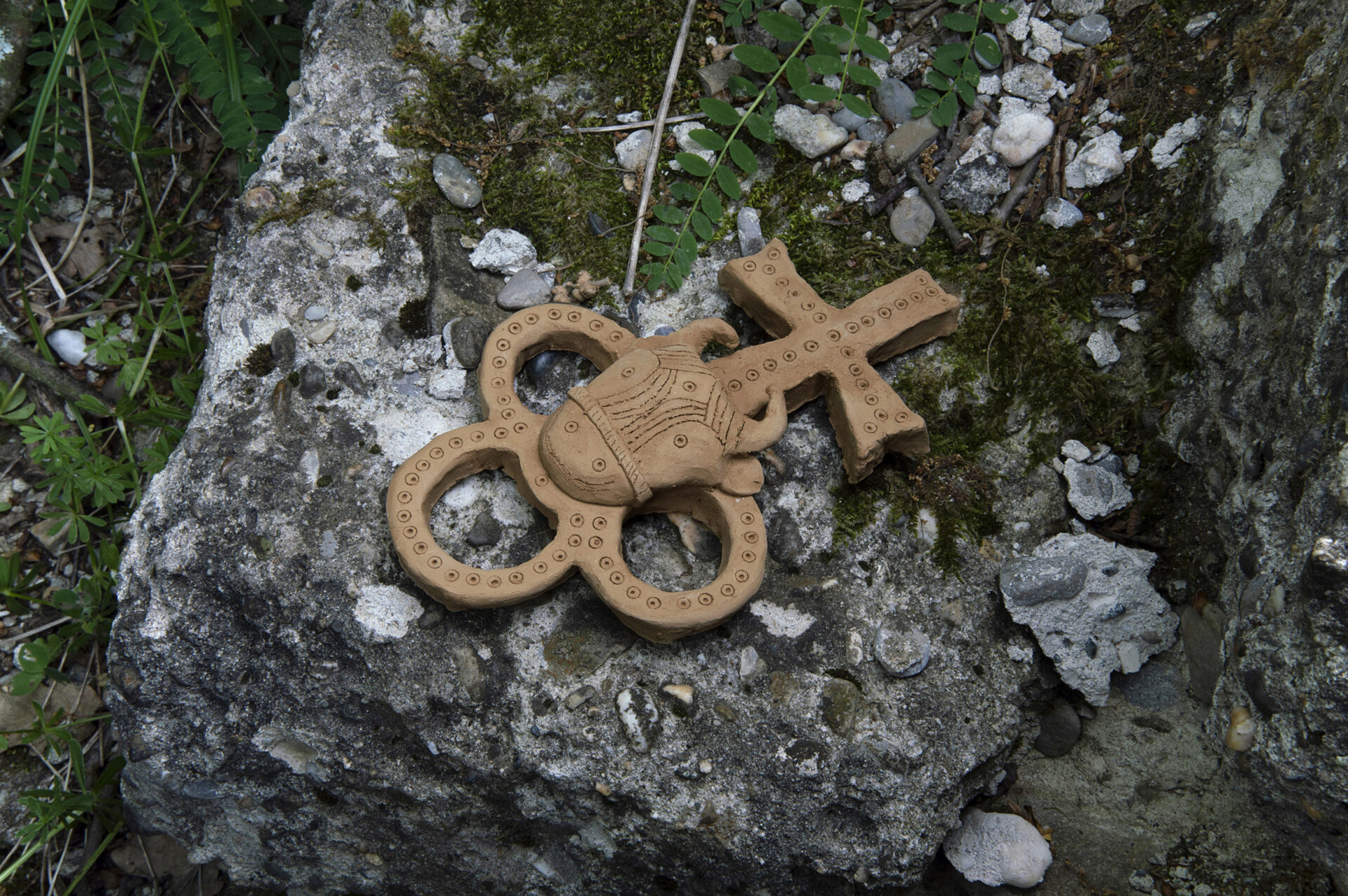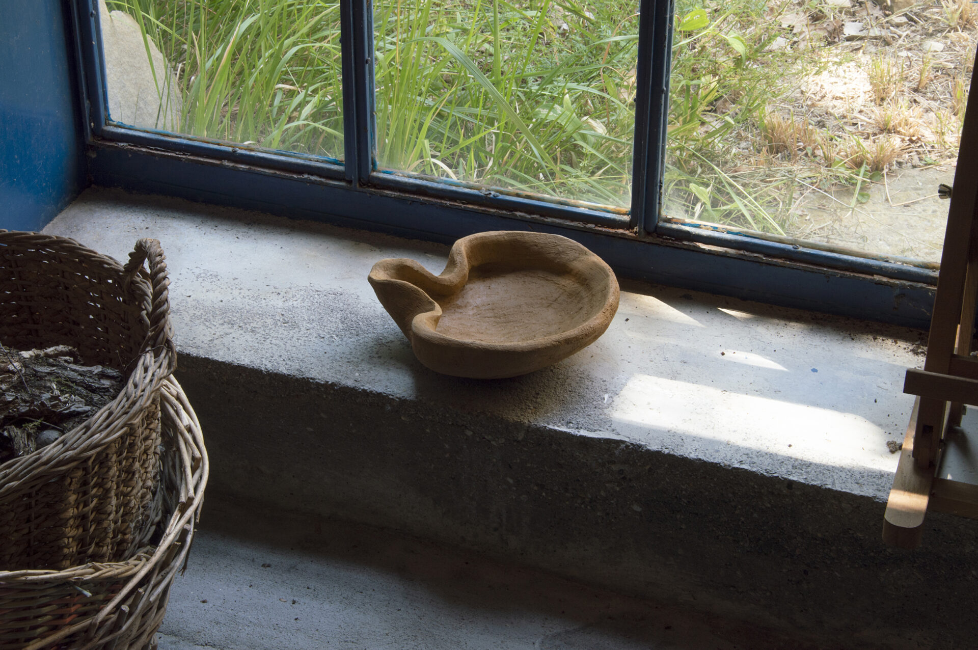 We spent a week living together at Robassa, a secluded house in the hills built in a modern style in the late sixties. It is a home that requires constant and costly maintenance: today the deterioration of the structure and its abandonment mean it is also used as a refuge by wild animals. Here, we recreated various objects from late antiquity and the late Bronze Age. The act of recreating these objects was for us a means of meditation on the past, present and future. Robassa was in turn a source of inspiration itself: the objects emerge from its spaces as though from a glitch in the space-time continuum marked by ruin.