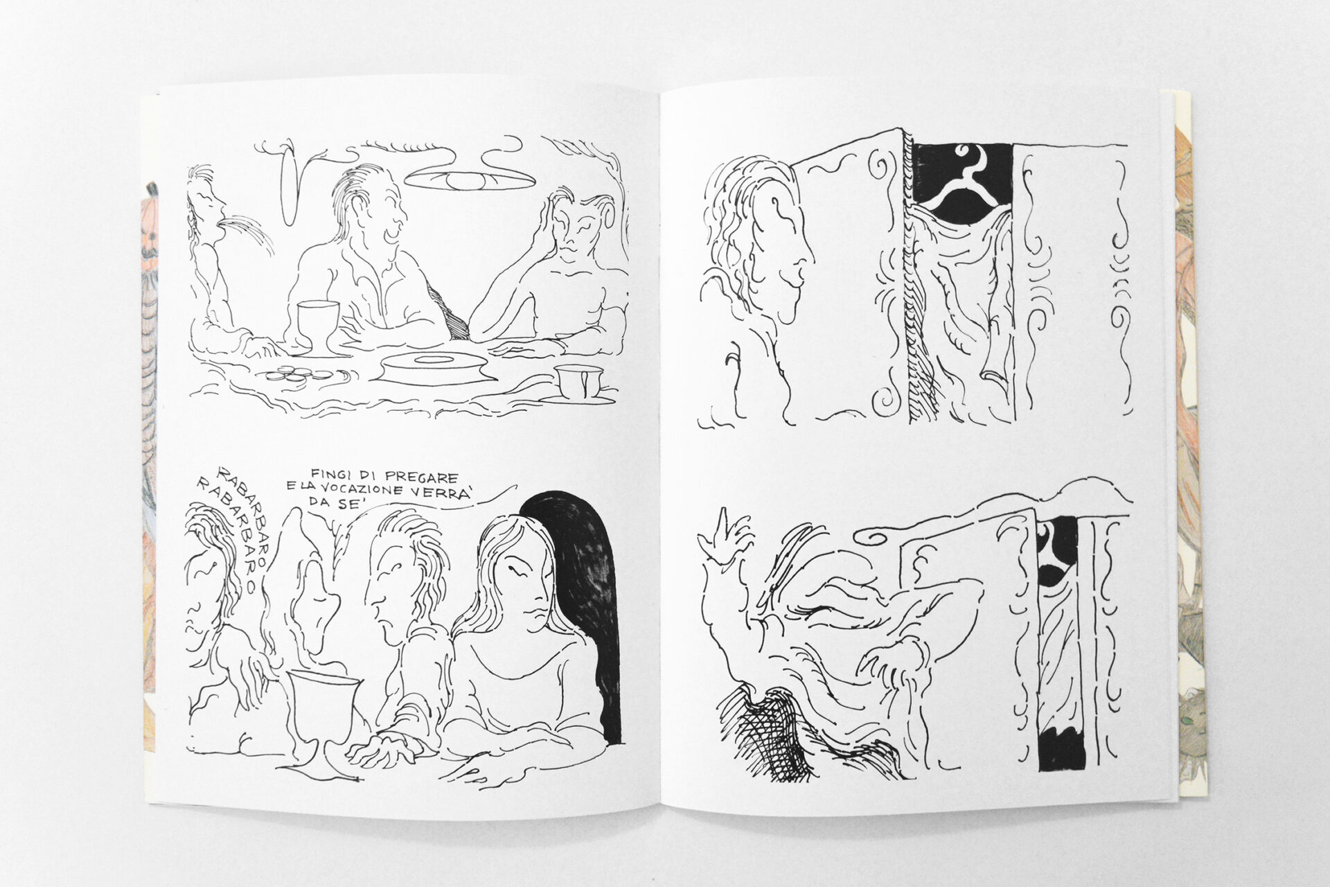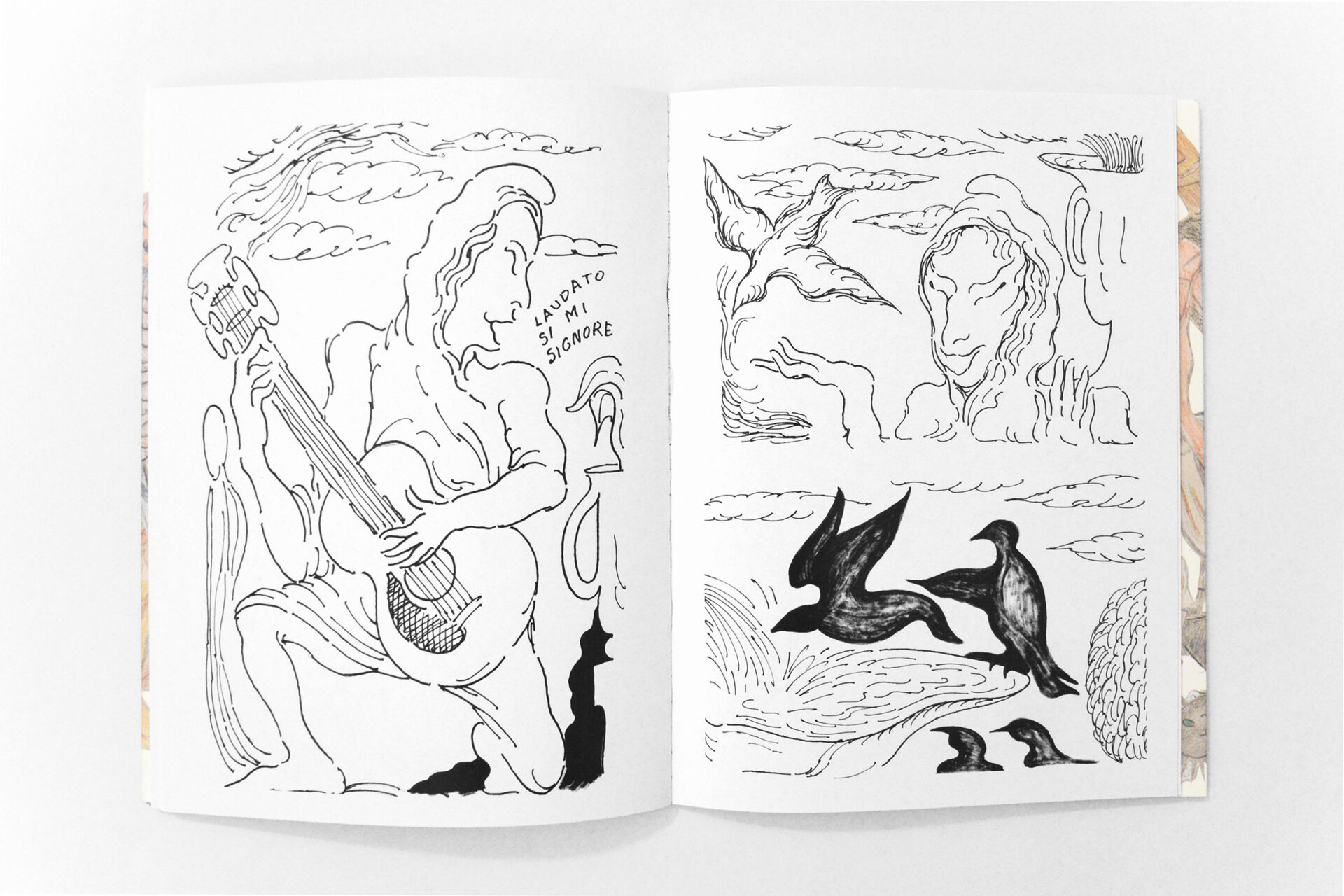 Gabriele Cremonesi’ “Versificatore Ipermnesico” is a story inspired by the life of Saint Francis, realised with b/w drawings.