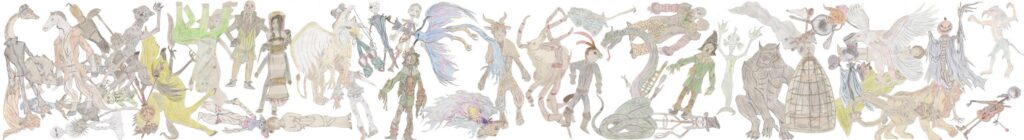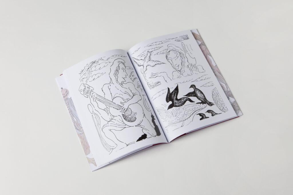 The 175 cm long outer cover is a collection of fantasy creatures drawn by the artist’s brother.